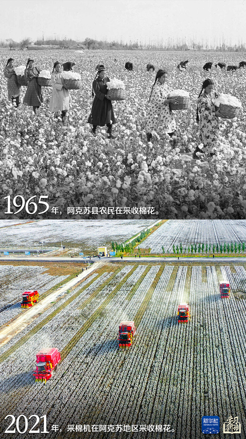 我們選取成就展上的一組照片,通過新舊對(duì)比,用鮮活的事實(shí)展現(xiàn)新疆取得的輝煌成就,一起感受翻天覆地的發(fā)展變化。