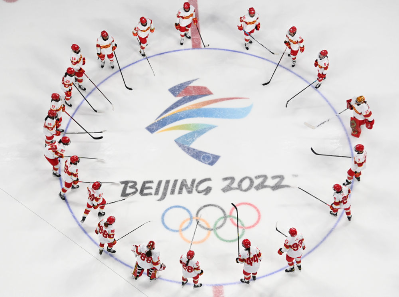 北京2022年冬奧會(huì)是迄今女性參賽比例最高、參與項(xiàng)目最多的一屆冬奧會(huì)。圖為中國(guó)國(guó)家女子冰球隊(duì)在賽場(chǎng)。
