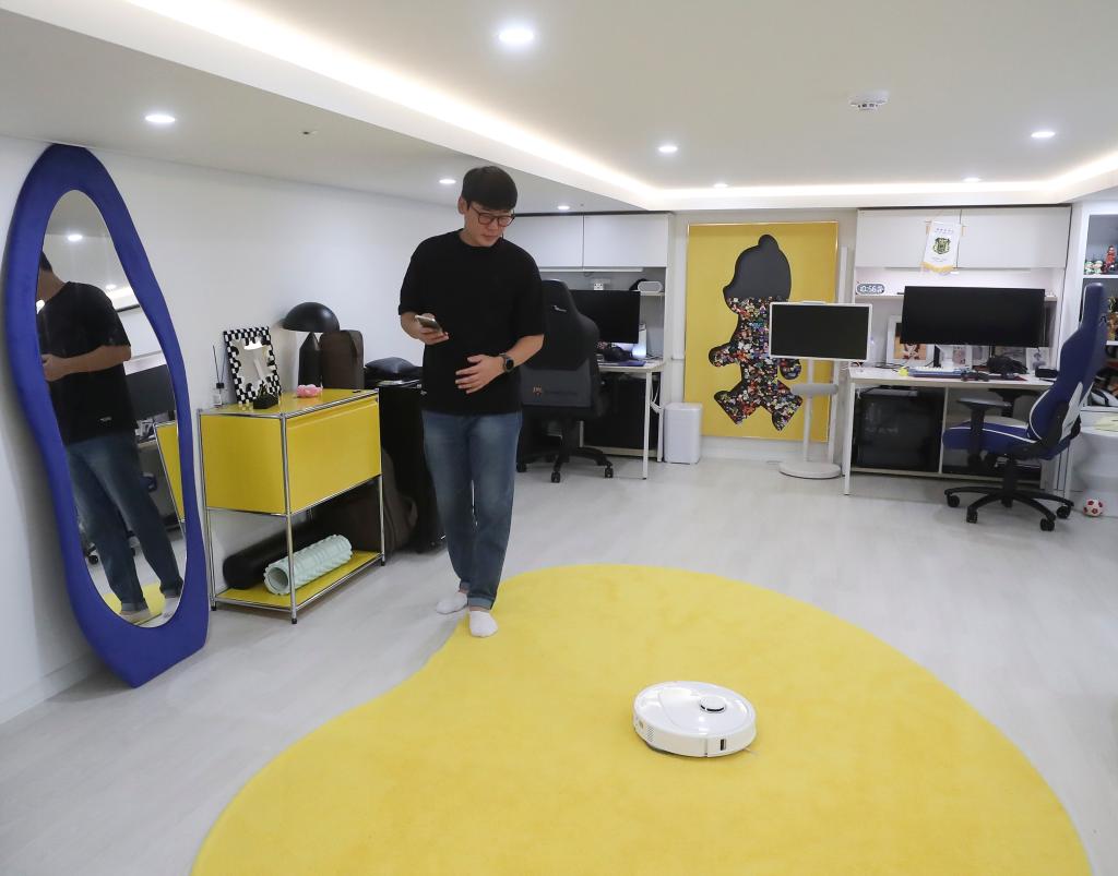 2025年10月13日,韓國消費(fèi)者在首爾的家中使用掃地機(jī)器人。新華社記者姚琪琳攝