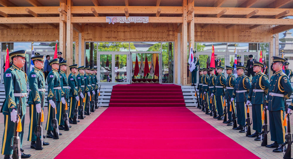 當?shù)貢r間11月1日下午,國家主席習近平出席韓國總統(tǒng)李在明舉行的歡迎儀式。