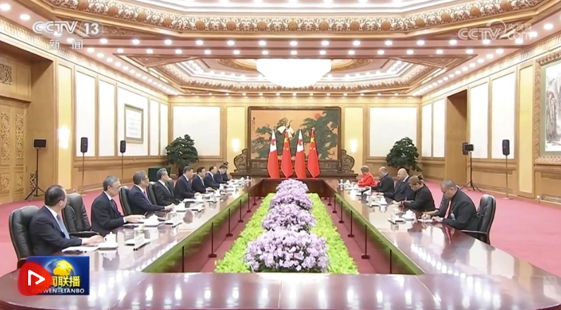 11月25日上午,國(guó)家主席習(xí)近平在北京人民大會(huì)堂會(huì)見(jiàn)來(lái)華進(jìn)行國(guó)事訪問(wèn)的湯加國(guó)王圖普六世。