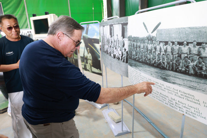 2025年7月16日,美中航空遺產(chǎn)基金會主席杰夫·格林在貴州黃平舊州機(jī)場查看飛虎隊資料照片??箲?zhàn)時期,舊州機(jī)場主要承擔(dān)飛機(jī)加油、彈藥補(bǔ)充和維修任務(wù)。常駐于此的美國飛虎隊?wèi)?zhàn)機(jī)頻頻在該機(jī)場起降,參加了湘西會戰(zhàn)、衡陽保衛(wèi)戰(zhàn)等著名戰(zhàn)役。該機(jī)場見證了中美聯(lián)合反抗法西斯的光輝歷史,還為確?!榜劮搴骄€”的順利暢通發(fā)揮了舉足輕重的作用。