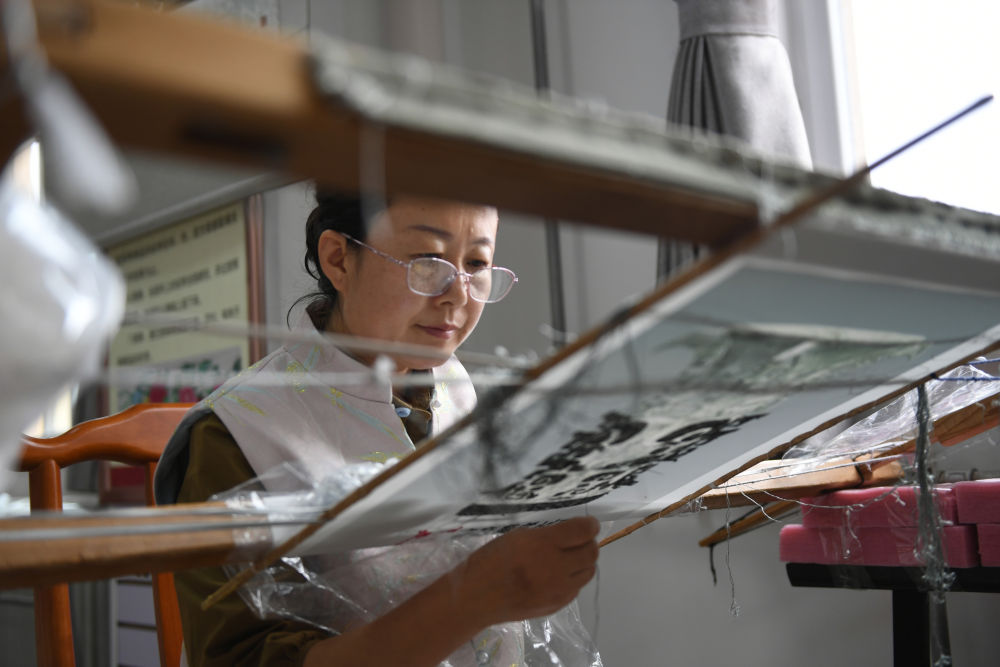 2023年9月8日,陜西千陽繡娘王紅燕在西秦刺繡文化產(chǎn)業(yè)園內(nèi)刺繡。陜西千陽縣是國(guó)家級(jí)非物質(zhì)文化遺產(chǎn)“西秦刺繡”的重要發(fā)祥地和傳承地。近年來,千陽縣將西秦刺繡作為助農(nóng)增收的重要產(chǎn)業(yè),推動(dòng)非遺項(xiàng)目產(chǎn)業(yè)化發(fā)展,助力鄉(xiāng)村振興。