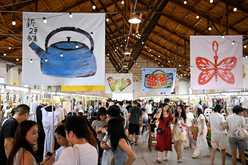 2025年7月5日,游客在西安西倉市集文創(chuàng)公園內(nèi)的“新二手市集”上參觀游覽。2024年以來,西安對(duì)西倉區(qū)域?qū)嵤拔⒏隆⑤p改造”,在保留核心區(qū)傳統(tǒng)集市風(fēng)貌的基礎(chǔ)上,升級(jí)改造原有設(shè)施,建設(shè)西倉市集文創(chuàng)公園,打造“復(fù)合型文化消費(fèi)新場(chǎng)景”;通過引入創(chuàng)新業(yè)態(tài)、開設(shè)“新二手市集”等方式,讓咖啡潮玩、非遺體驗(yàn)、城市記憶展覽等年輕化元素與市井煙火相融共生,使老城核心區(qū)在“微更新”中持續(xù)煥發(fā)新活力。