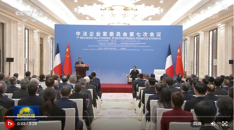 12月4日中午,國家主席習近平在北京同法國總統(tǒng)馬克龍共同出席中法企業(yè)家委員會第七次會議閉幕式并致辭。