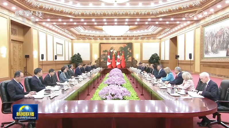 1月16日上午,國(guó)家主席習(xí)近平在北京人民大會(huì)堂會(huì)見(jiàn)來(lái)華進(jìn)行正式訪問(wèn)的加拿大總理卡尼。