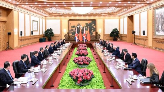 斯塔默說:“尊敬的習(xí)主席,如您所說,這是8年以來英國首相的首次訪華,在我看來這時間太長了。我非常高興的是,此次與我隨行的代表團陣容非常強大,包括約60位重要企業(yè)和文化界代表。他們和我一樣,都期盼能在中國成長和拓展業(yè)務(wù)。我一向都說得很清楚,英中兩國需要一個長期穩(wěn)定的全面戰(zhàn)略伙伴關(guān)系。中國在國際舞臺上發(fā)揮重要作用,英中兩國建立更高水平的雙邊關(guān)系至關(guān)重要。”