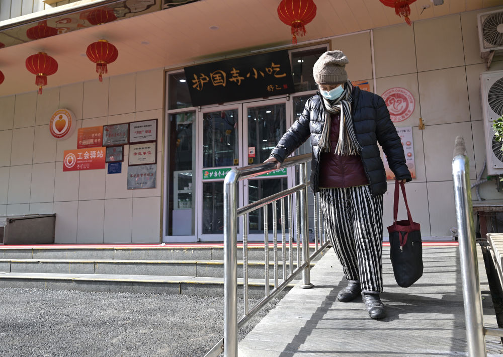 73歲的社區(qū)居民走在專為老年人和行動(dòng)不便者設(shè)置的緩步斜坡步道上(2月10日攝)。