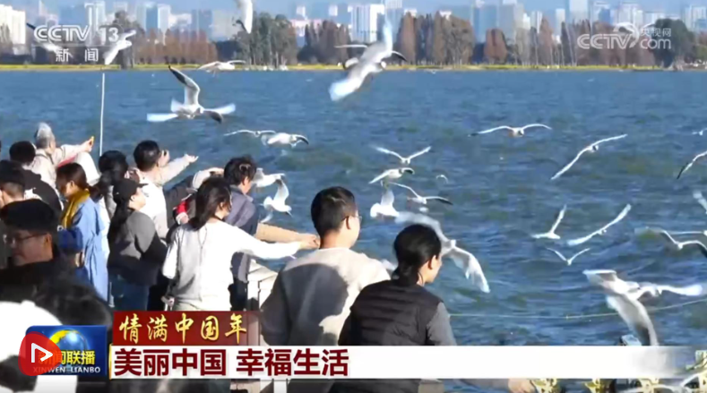 春節(jié)假期,云南昆明滇池沙鷗翔集、碧波蕩漾,在緊鄰滇池的福保社區(qū),人們跳起民族舞蹈,喜迎八方來客,共賞滇池生態(tài)美景。
