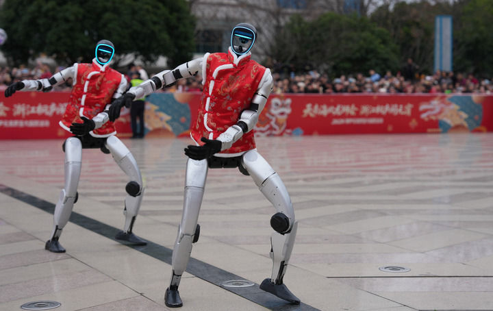 2026年2月28日,宇樹(shù)科技人形機(jī)器人在浙江省桐廬縣中心廣場(chǎng)表演舞蹈。