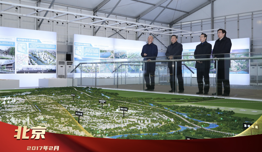 2017年2月24日,習近平總書記在北京城市副中心行政辦公區(qū)建設(shè)現(xiàn)場指揮部察看規(guī)劃沙盤,了解副中心建設(shè)理念、目標定位、文化保護等情況。創(chuàng)新為要、“瓣瓣同心”,總書記的戰(zhàn)略擘畫,引領(lǐng)京津冀協(xié)同發(fā)展走深走實。