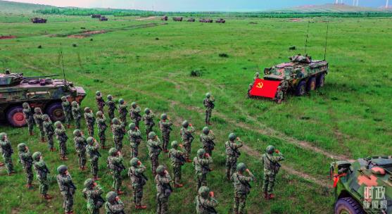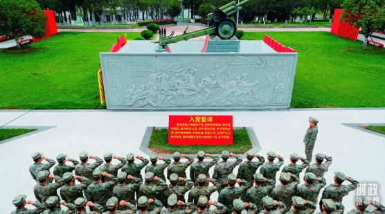 △2025年7月1日,“劉老莊連”組織黨員重溫入黨誓詞。(解放軍畫報謝沅鑫拍攝)