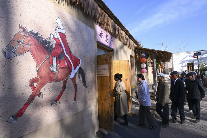 2026年4月3日,人們排隊進入新疆昭蘇縣燈塔知青館嬌龍廳獻花,追憶賀嬌龍同志為當(dāng)?shù)亟?jīng)濟社會發(fā)展、文旅品牌打造、農(nóng)牧民增收致富作出的貢獻。新華社記者 胡虎虎 攝