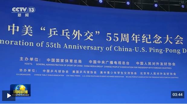 4月10日,習近平主席向中美“乒乓外交”55周年紀念大會暨中美青少年體育交流系列活動啟動儀式致賀信,高度評價“乒乓外交”的歷史和現(xiàn)實意義,鼓勵兩國各界人士特別是青年一代相知相親、攜手前行,為兩國關系注入強大動力和溫暖能量。習近平主席的賀信在中美各界人士中引發(fā)熱烈反響。