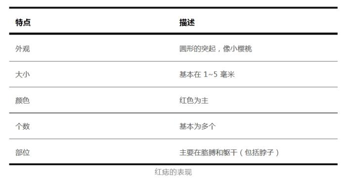 下面我們通過表格梳理了紅痣的主要特點(diǎn):