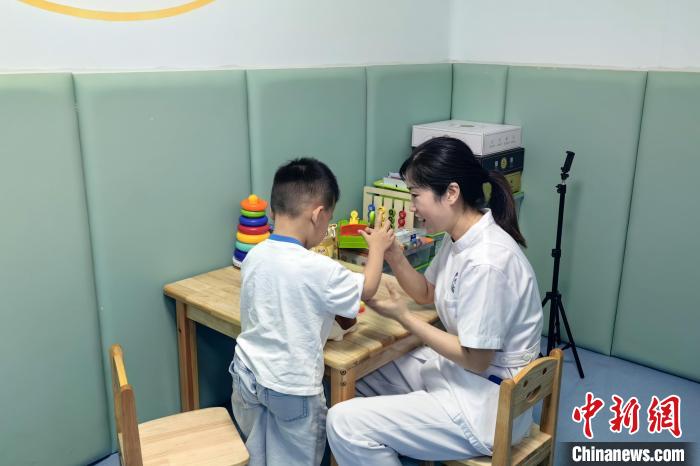 6月6日,在南昌大學第一附屬醫(yī)院贛江新區(qū)醫(yī)院,醫(yī)護人員為孤獨癥兒童提供康復幫扶。江西省殘疾人福利基金會 供圖