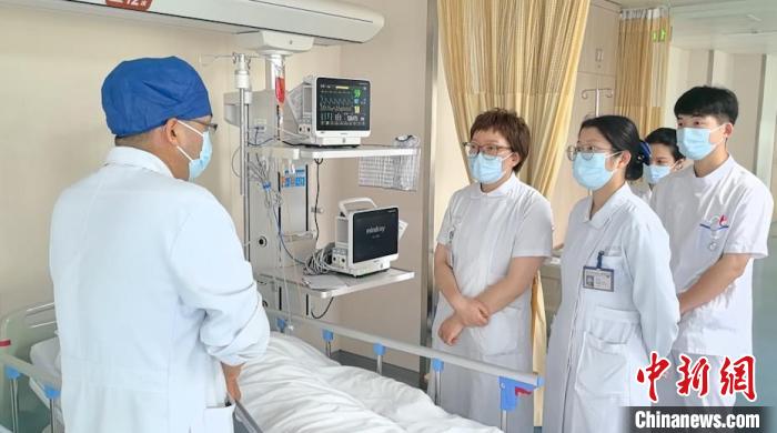 復旦大學附屬金山醫(yī)院心血管內(nèi)科醫(yī)護團隊在為患者診斷病情。楊惠聰 攝
