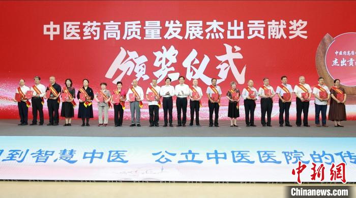 大會現(xiàn)場頒布“中醫(yī)藥高質(zhì)量發(fā)展杰出貢獻(xiàn)獎”。周藝偉 攝