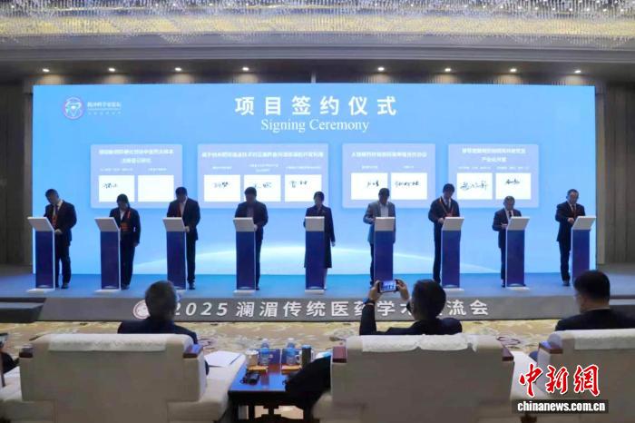 12月5日,瀾湄傳統(tǒng)醫(yī)藥學(xué)術(shù)交流會(huì)上舉行的項(xiàng)目簽約儀式?!〉潞曛萑诿襟w中心 供圖