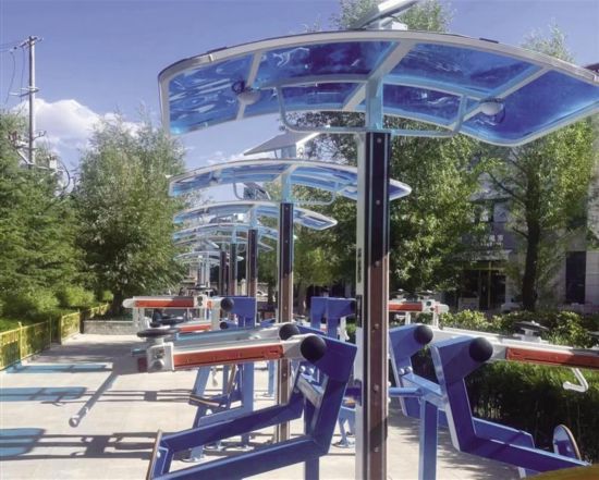 為什么要說它們智能呢?原來,如雙位漫步機(jī)、雙位蹬力器、雙位背部訓(xùn)練器、雙位健身車器材,均采用太陽能供電系統(tǒng),為LED燈提供夜間照明,以及為運(yùn)動(dòng)數(shù)據(jù)采集、處理提供能源,加遮陽棚并與安裝環(huán)境相融合。同時(shí),這些器材具備數(shù)據(jù)統(tǒng)計(jì)和數(shù)據(jù)處理功能,讓健身者在運(yùn)動(dòng)的同時(shí)實(shí)時(shí)了解自己的健身數(shù)據(jù),更好地規(guī)劃健身運(yùn)動(dòng)的方式,讓力量訓(xùn)練更科學(xué)、有效。此外,器材還可以通過顯示屏、微信小程序或手機(jī)APP進(jìn)行在線視頻訓(xùn)練指導(dǎo)。