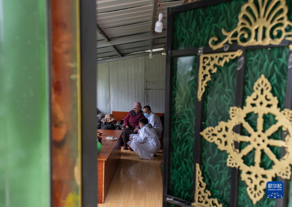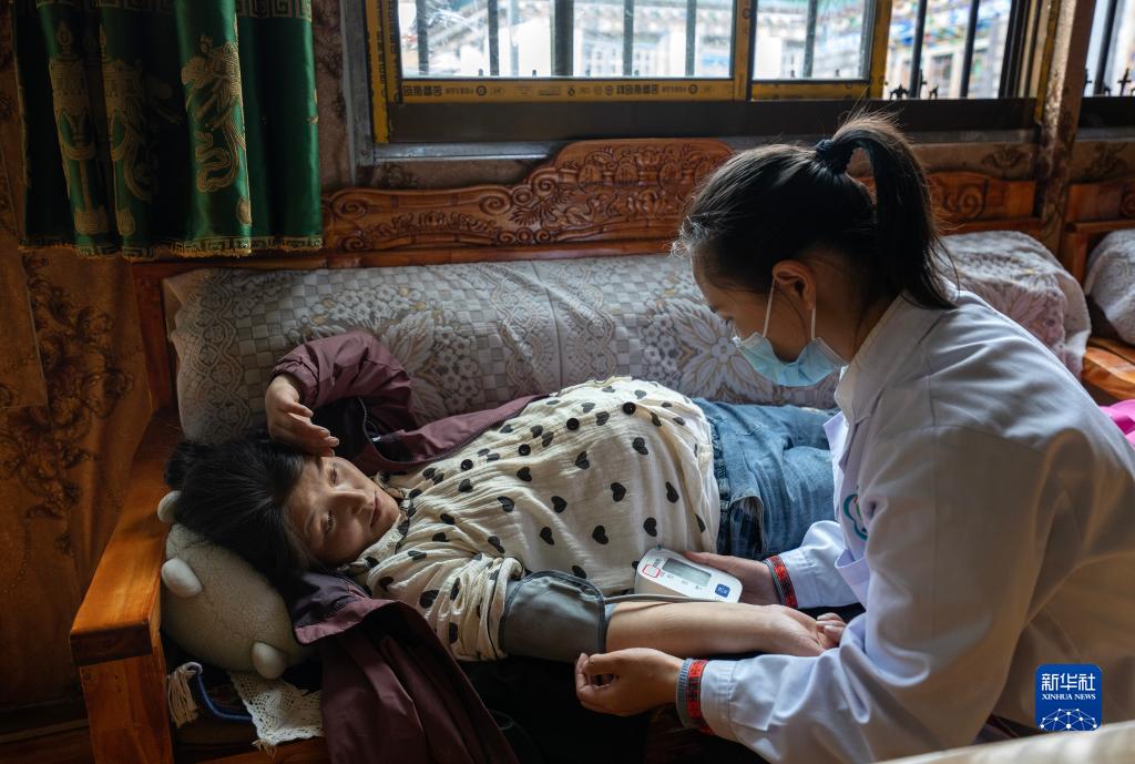 6月12日,王彤旭在吞不絨村為珠杰診治。新華社記者 費(fèi)茂華 攝
