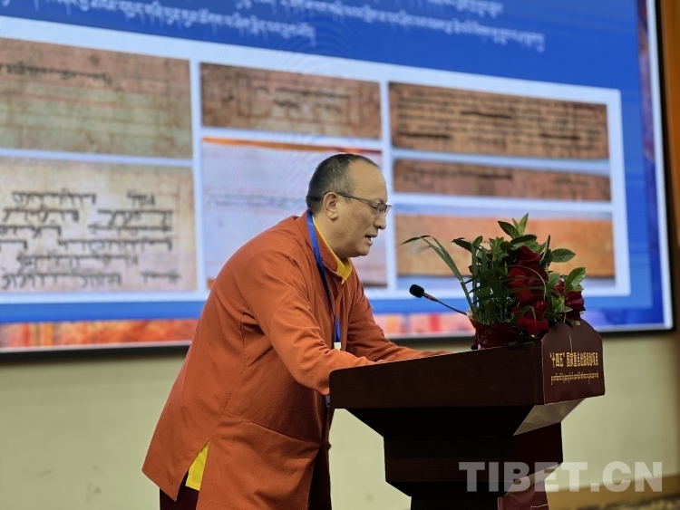 圖為中國中醫(yī)科學院學部委,國醫(yī)大師,西藏藏醫(yī)藥大學教授、博士生導師,西藏藏醫(yī)藥大學附屬醫(yī)院主任醫(yī)師旺堆講話 攝影:貢嘎來松