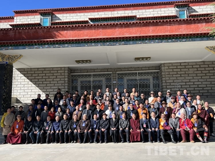 圖為參加《藏醫(yī)藥文獻大全》(全206冊)首發(fā)暨贈書儀式的嘉賓合影留念 攝影:德吉卓瑪