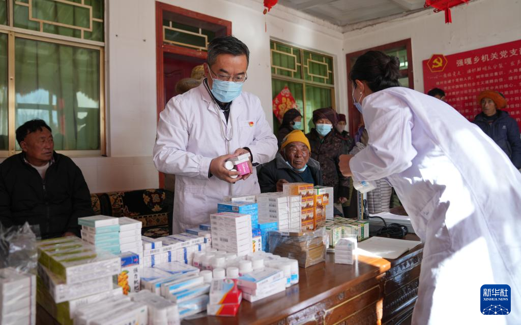1月24日,西藏大學(xué)醫(yī)學(xué)院熊海教授給患者發(fā)放藥品。新華社記者 晉美多吉 攝 ??