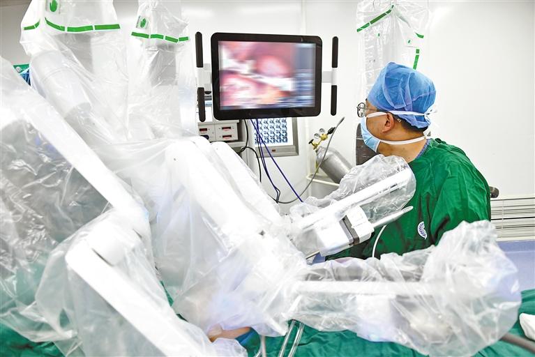 圖為自治區(qū)人民醫(yī)院普通外科主任巴桑頓珠運(yùn)用第四代手術(shù)機(jī)器人開(kāi)展外科手術(shù)。