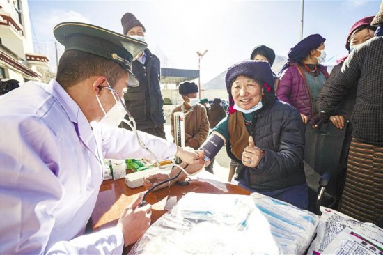 武警西藏總隊(duì)拉薩支隊(duì)深入拉薩市墨竹工卡縣巴洛村開(kāi)展惠民問(wèn)診活動(dòng)。記者 格桑倫珠 唐斌 攝