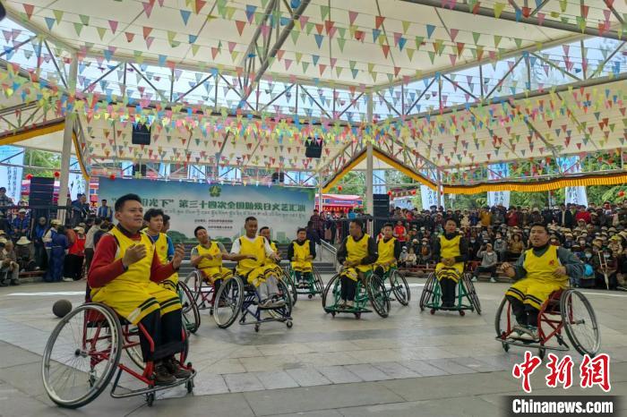圖為助殘日當(dāng)天,西藏輪椅籃球隊(duì)成員表演節(jié)目《健康西藏動(dòng)起來(lái)》。西藏自治區(qū)殘聯(lián)供圖