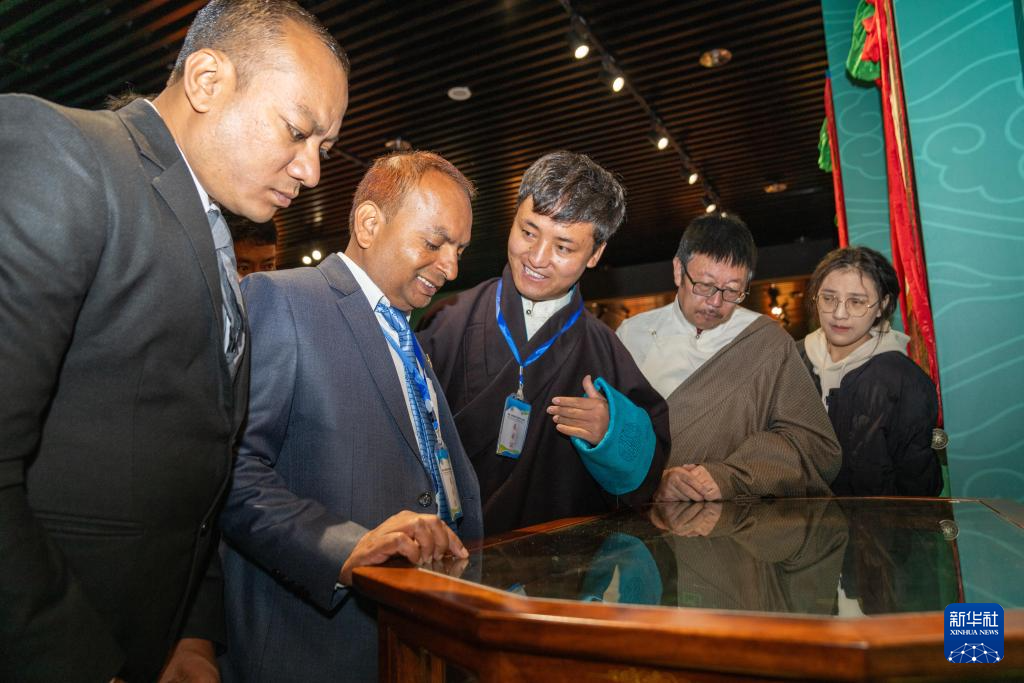 首屆《四部醫(yī)典》國(guó)際學(xué)術(shù)交流會(huì)參會(huì)嘉賓參觀《四部醫(yī)典》專題展覽(10月18日攝)。新華社記者 旦增尼瑪曲珠 攝