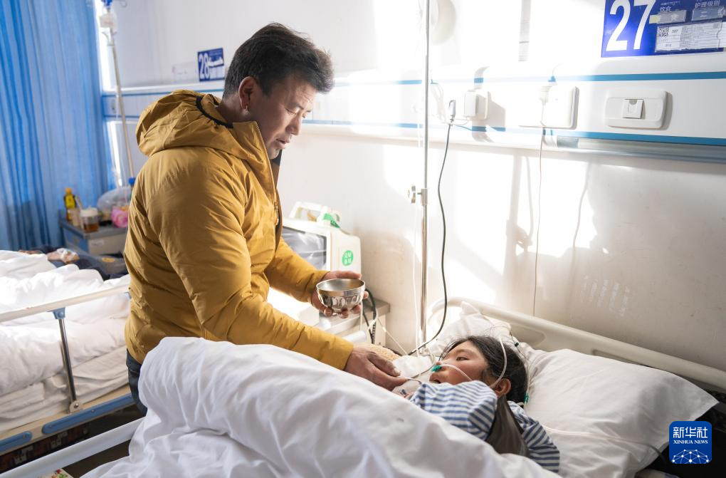 1月9日,在日喀則市人民醫(yī)院婦產(chǎn)科病房,產(chǎn)婦家人在喂產(chǎn)婦吃飯。新華社記者 丁增尼達(dá) 攝 ??