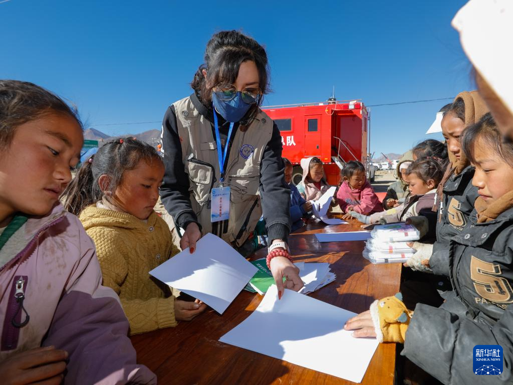 在西藏定日縣曲洛鄉(xiāng)措昂村受災(zāi)群眾安置點(diǎn),中國科學(xué)院心理研究所應(yīng)急心理救援隊(duì)的專家譚惜仁組織安置點(diǎn)內(nèi)的80余名孩子們畫畫、唱歌、運(yùn)動(dòng),為他們進(jìn)行心理疏導(dǎo)。孩子們親切地稱她為“甜心姐姐”。譚惜仁曾參加過四川汶川地震、青海玉樹地震等震后心理救援工作,經(jīng)驗(yàn)豐富。