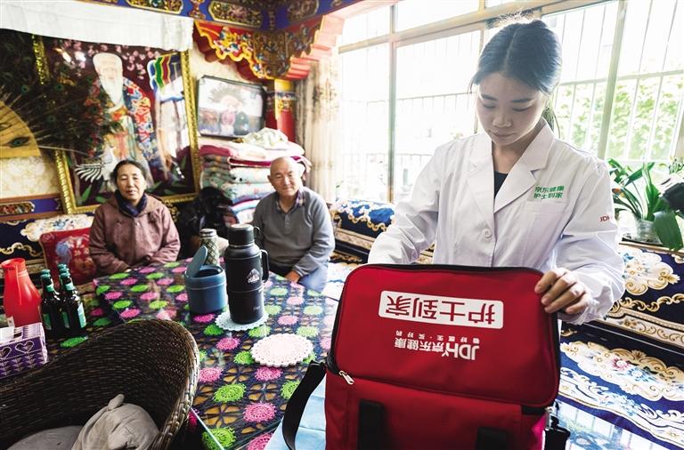 在拉薩一小區(qū),護士戴柳柳正為白瑪曲珍老人測量血壓。這位曾就職于三甲醫(yī)院4年的護士坦言:“一對一上門為老人服務,我能根據(jù)他們的用藥記錄、日常飲食及血壓波動記錄,更好地制定護理方案?!?/p>