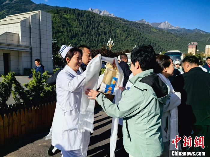 迭部縣人民醫(yī)院的醫(yī)護(hù)人員20日為“同心·共鑄中國(guó)心”志愿者送行。他們表示,志愿者們以高度的責(zé)任感和使命感,深入該醫(yī)院開展技術(shù)幫扶,進(jìn)行高難度手術(shù)示范,通過手把手培訓(xùn)推動(dòng)學(xué)科建設(shè)水平提升,捐贈(zèng)醫(yī)療物資及科普資料,助力打造“帶不走的醫(yī)療隊(duì)”。