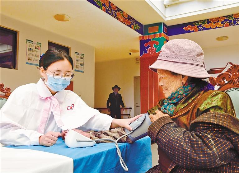 圖為醫(yī)生為老年人測量血壓。記者 旦增蘭澤 攝