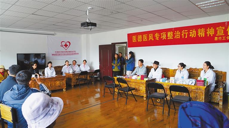 醫(yī)務(wù)人員為老人開展健康檢查。格桑倫珠 攝