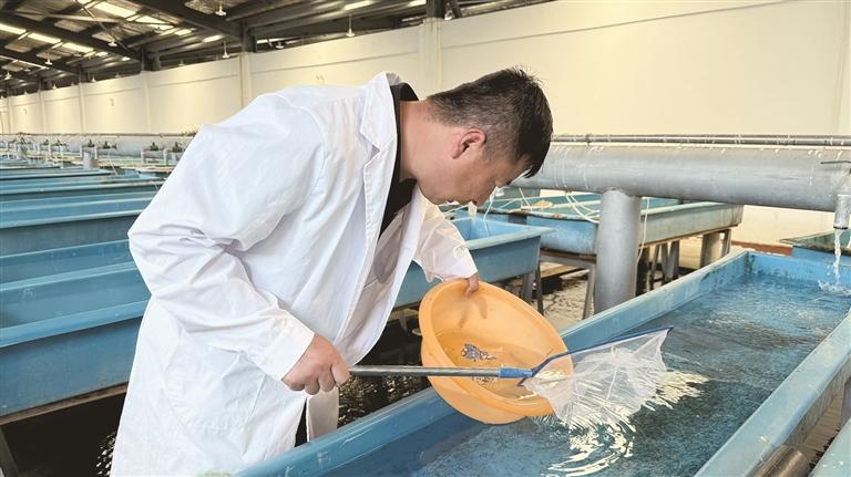 基因組信息更直接指導(dǎo)了全人工繁育體系的優(yōu)化?!拔覀儼l(fā)現(xiàn)黑斑原鮡的性腺發(fā)育與光照周期、水溫存在強(qiáng)關(guān)聯(lián)。”王萬(wàn)良說(shuō),團(tuán)隊(duì)還通過(guò)轉(zhuǎn)錄組測(cè)序揭示了苗種拒食行為的分子機(jī)制——其腸道缺乏消化植物蛋白的基因,這促使科研人員開發(fā)出以小型水生動(dòng)物為主的專用飼料,成功解決了開口餌料難題。