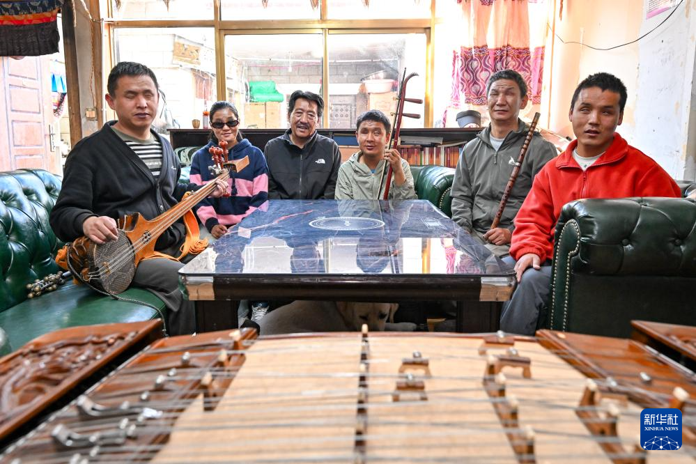 在其美多吉老師的悉心指導(dǎo)下,這群年輕人逐漸掌握了二胡、揚(yáng)琴、扎念琴等傳統(tǒng)樂(lè)器,開(kāi)始了朗瑪堆諧的表演生涯?!澳菚?huì)兒天不亮就起床,練三個(gè)小時(shí)才吃早飯,然后一直練到天黑?!睒?lè)團(tuán)主唱次仁曲珍回憶道,“剛開(kāi)始時(shí),一兩個(gè)月才能學(xué)會(huì)一首曲子。”
