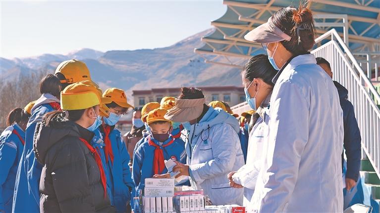 圖為巡診醫(yī)療隊(duì)隊(duì)員為墨竹工卡縣南京實(shí)驗(yàn)小學(xué)學(xué)生講解流感預(yù)防知識(shí)。記者 格桑倫珠 攝