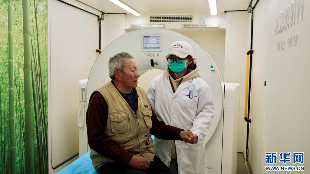 12月3日,醫(yī)護(hù)人員在雅礱物交會(huì)義診現(xiàn)場協(xié)助群眾進(jìn)行CT檢查。周昱龍 攝