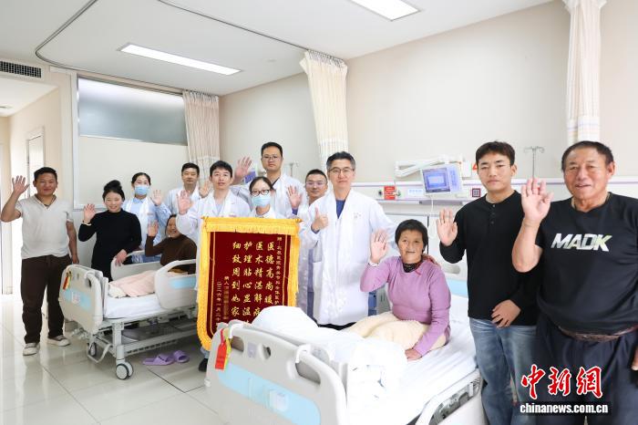 64歲的姐姐次仁忠嘎和56歲的妹妹丁增,在南開大學(xué)附屬北辰醫(yī)院骨關(guān)節(jié)科接受了機(jī)器人輔助下雙側(cè)全膝關(guān)節(jié)表面置換術(shù),術(shù)后家屬為該院醫(yī)護(hù)團(tuán)隊獻(xiàn)上哈達(dá)及錦旗。(南開大學(xué)附屬北辰醫(yī)院供圖)