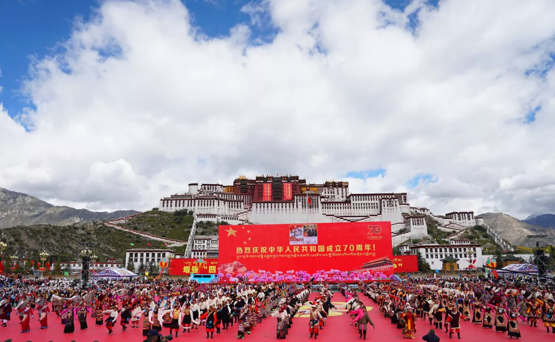 2019年9月29日上午,西藏自治區(qū)以千人鍋莊的形式,表達對黨的無限熱愛和對祖國母親的深深祝福。王淑 攝