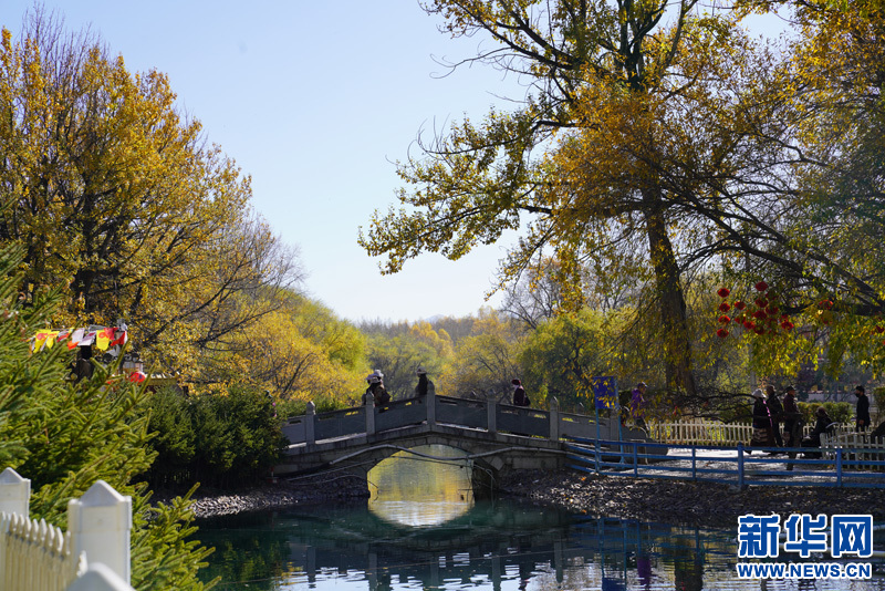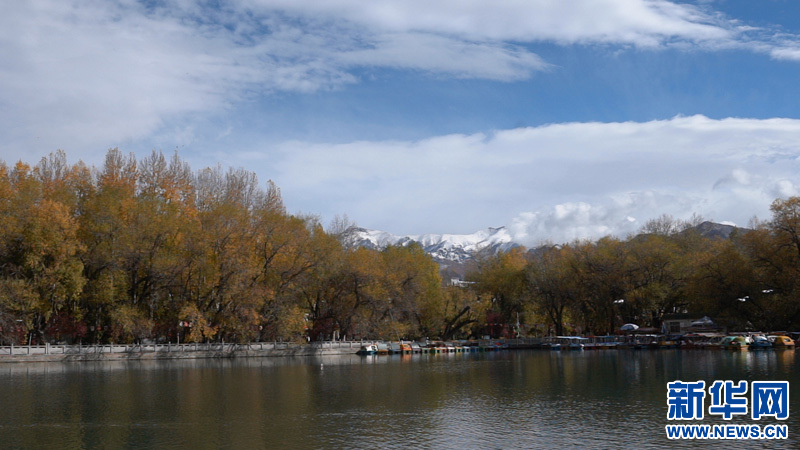 金秋的宗角祿康公園景致別有一番滋味:藍(lán)天、碧水與遠(yuǎn)處的雪山交相輝映,一切仿佛是畫家手中的調(diào)色盤,美的恰到好處。