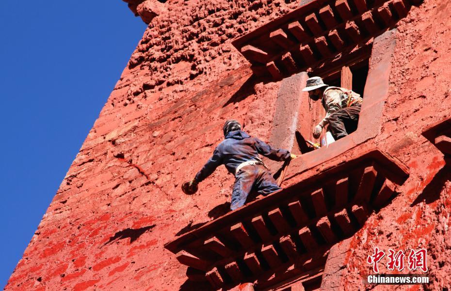 布達拉宮外墻粉刷煥然一新