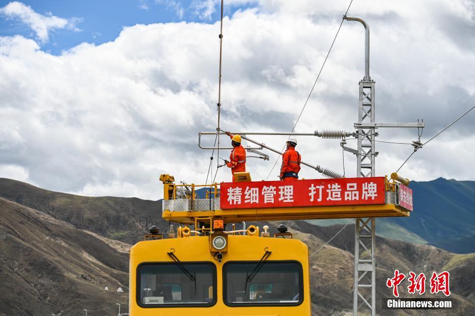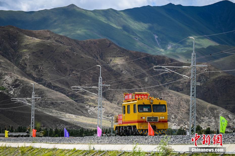 7月6日,中國(guó)中鐵電氣化局施工人員使用恒張力放線車(chē)對(duì)拉林鐵路接觸網(wǎng)專業(yè)首件工程進(jìn)行復(fù)檢。當(dāng)日,川藏鐵路拉薩至林芝段(簡(jiǎn)稱“拉林鐵路”)接觸網(wǎng)專業(yè)首件工程在西藏山南市扎囊至扎其區(qū)間成功建成,這為全線施工確定了規(guī)范和標(biāo)準(zhǔn),至此拉林鐵路也進(jìn)入了全線電氣化大規(guī)模施工階段。 拉林鐵路正線全長(zhǎng)435.48公里,是西藏首條電氣化鐵路,正線共需架設(shè)接觸網(wǎng)540.63條公里,設(shè)計(jì)時(shí)速160公里。中新社記者 何蓬磊 攝