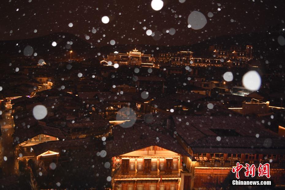 11月22日,正值中國(guó)二十四節(jié)氣中的“小雪”節(jié)氣,云南香格里拉市迎來(lái)降雪,夜色中的獨(dú)克宗古城美如畫(huà)。中新社記者 劉冉陽(yáng) 攝