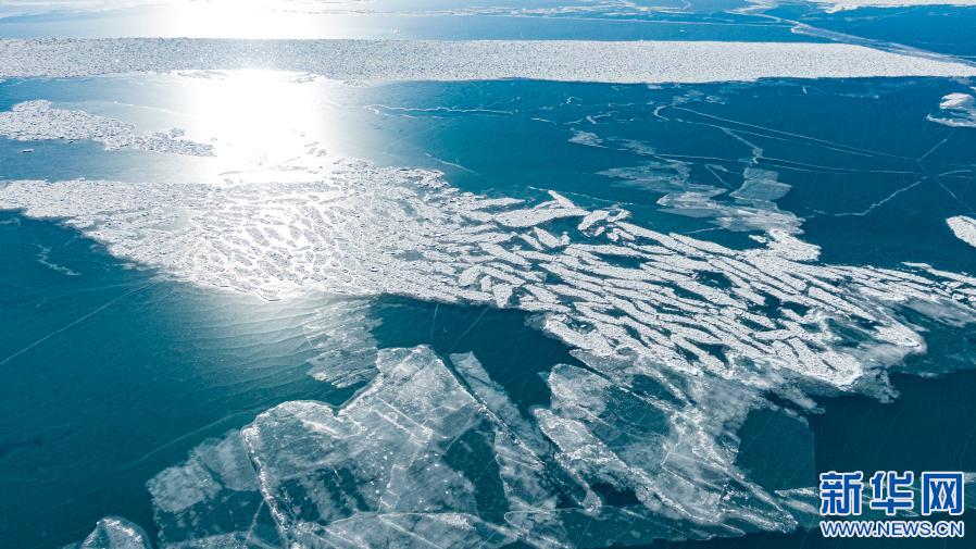 湖面結(jié)冰的納木錯(1月29日攝,無人機(jī)照片)。新華社記者 晉美多吉 攝