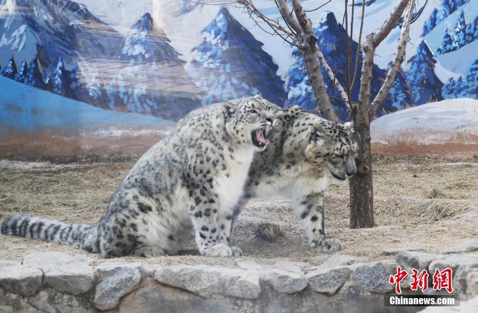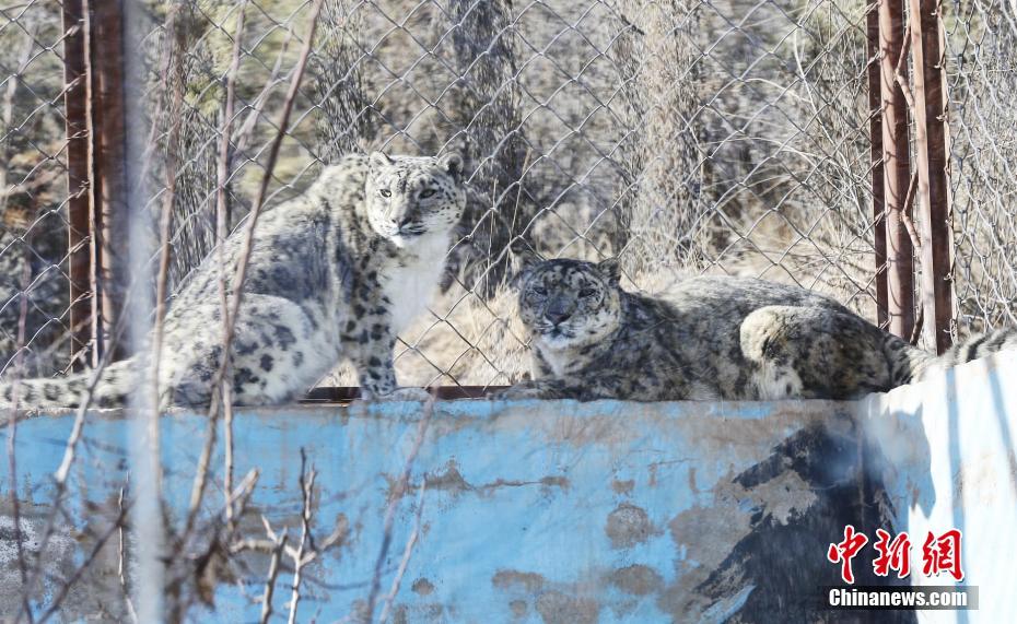 3月13日,青藏高原野生動(dòng)物園雪豹館內(nèi),“傲雪”(左)陪伴21歲的“大豹”(右)享受春日暖陽(yáng)。副園長(zhǎng)齊新章介紹,為了雪豹的身心健康,2017年,動(dòng)物園嘗試以科學(xué)、理性的技術(shù)將年幼的雌性“傲雪”和年老的雄性“大豹”合籠飼養(yǎng),發(fā)現(xiàn)“大豹”在“傲雪”的陪伴和帶動(dòng)下,活動(dòng)量明顯增加。據(jù)悉,2000年出生的“大豹”今年已21歲(相當(dāng)于人類(lèi)105歲),突破雪豹的壽命極限值,且身體各項(xiàng)指標(biāo)穩(wěn)定。中新社記者 馬銘言 攝